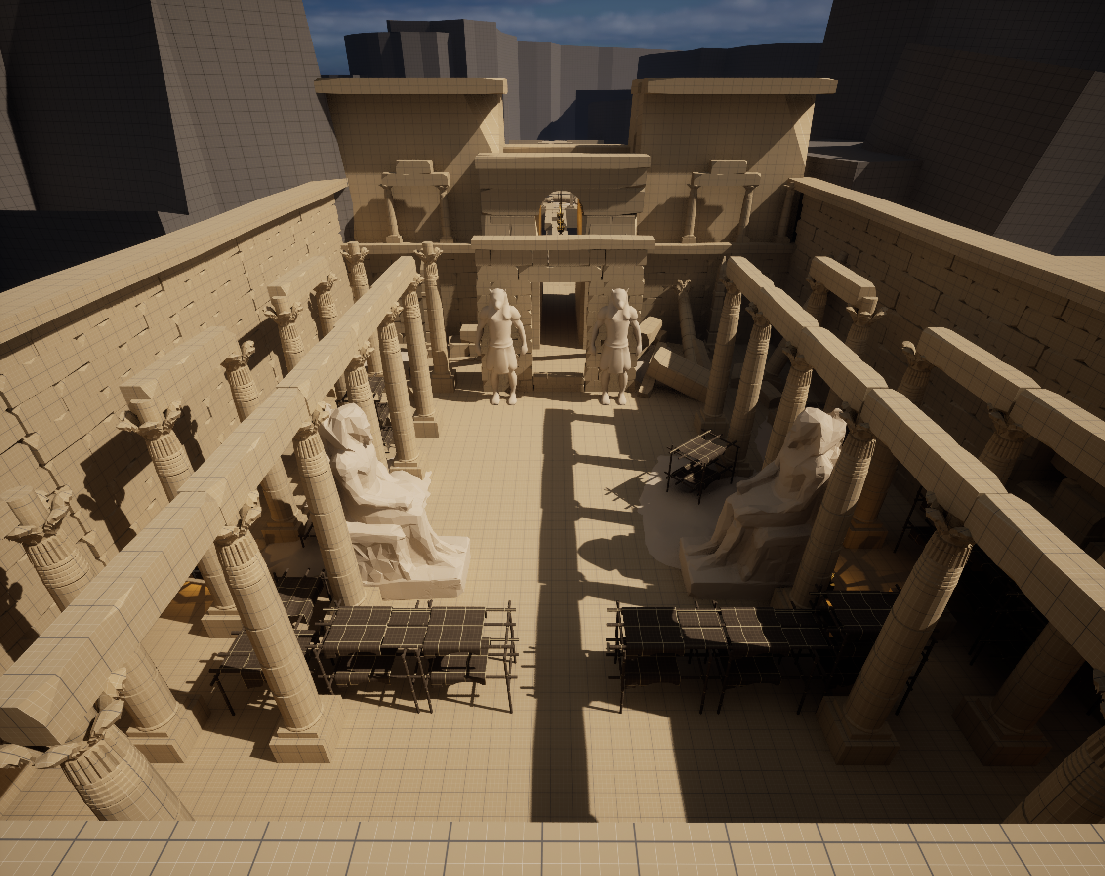 Search and organization of visual references, Familiarization with Unreal Engine 5 and assets, Iteration of layout design and modeling, Playtests.