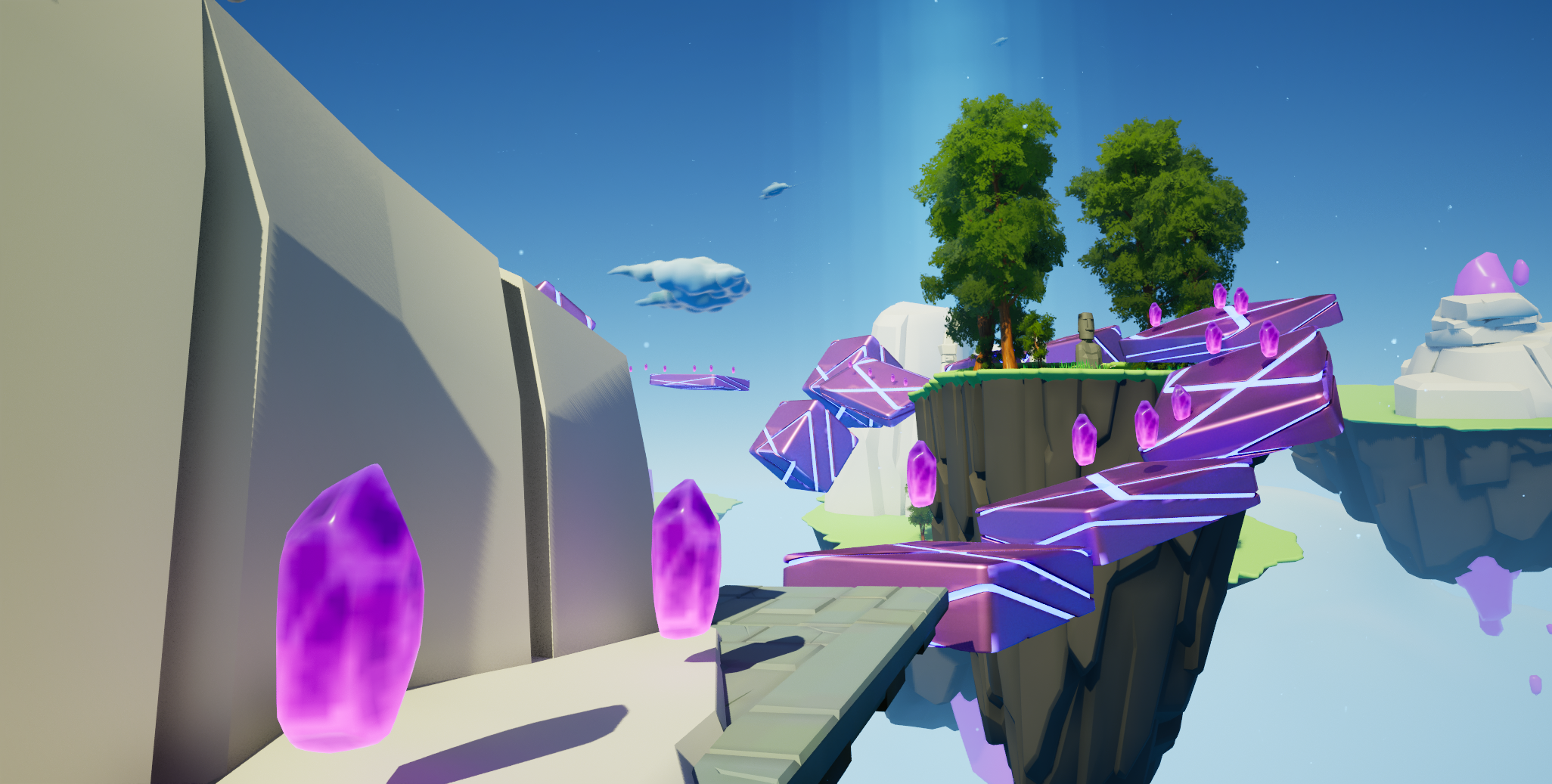 Scenario: Get to the island of sommet to find the treasure and collect as much energy crystal as you can along the way.